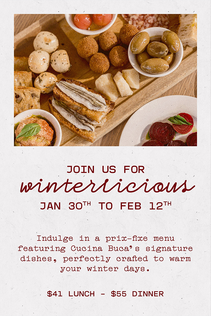Buca was founded on an appreciation for Italy’s diverse regional cuisine and the highest standards of quality, culture and design. Using only the finest, seasonal ingredients sourced from specialty purveyors and farmers, we maintain an appreciation and passion for Italian culture.